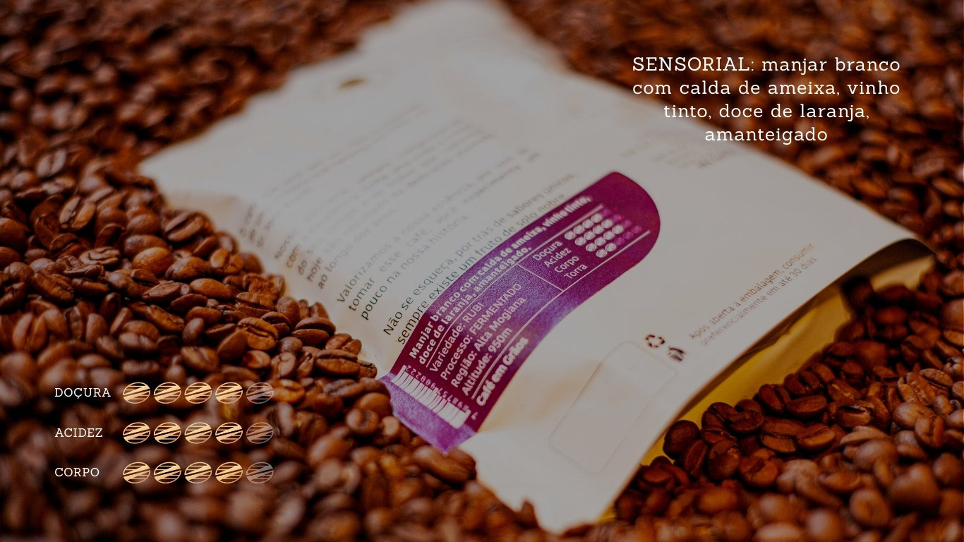 Experiência Sensorial Profunda: Um café que entrega uma bebida com corpo denso e cremoso, doçura acentuada e uma acidez que valoriza cada detalhe, convidando a uma jornada de descoberta a cada gole.