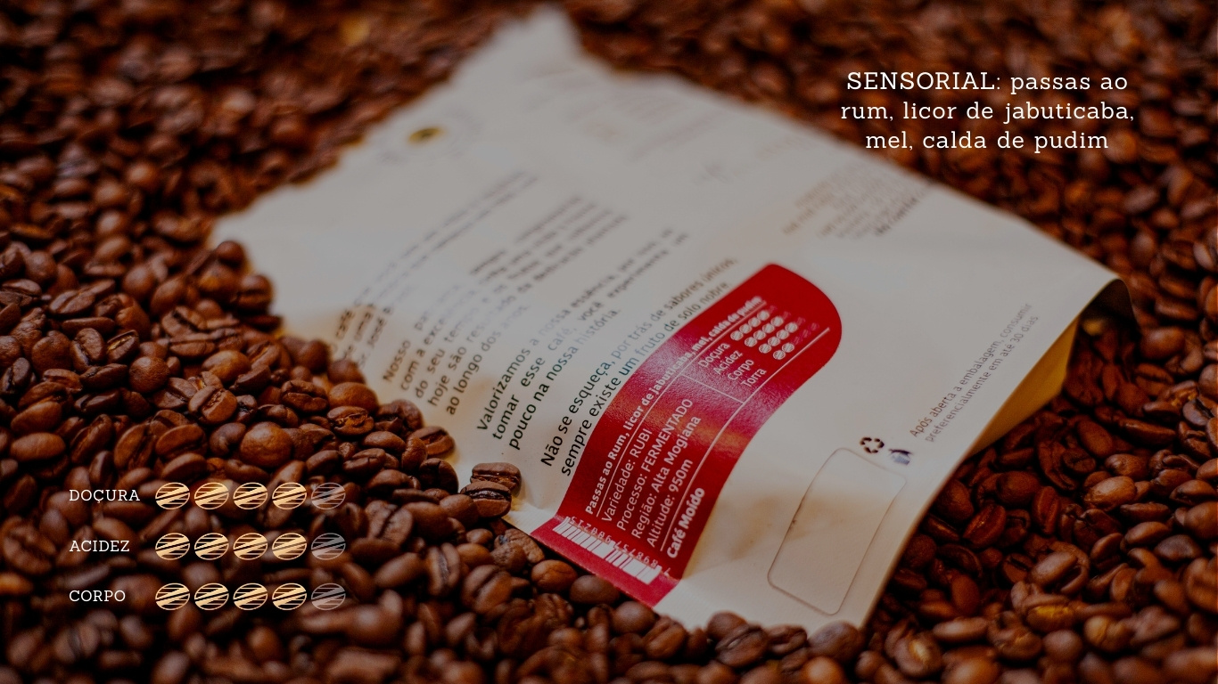 Cada grão do PASSAS AO RUM nasce de um processo feito com atenção em cada detalhe. Desde a seleção da variedade Rubi, a cuidadosa colheita na altitude de 950m na Alta Mogiana, até a inovadora fermentação controlada, tudo é pensado para respeitar e realçar o que o café tem de melhor.